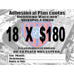 Últimos 14 días: 18 cuotas del Fideicomiso CASLA La Comisión de la Vuelta a Boedo y Restitución Histórica del Club Atlético San Lorenzo de Almagro, informa que continúa hasta 25 de Diciembre de 2015 el plan de 18 cuotas al Fideicomiso por la Vuelta a Boedo.